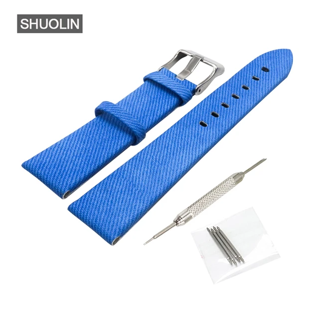 | [해외]패션 남성 시계 스트랩 손목 20 미리메터 시계 밴드 20 미리메터 2017 새로운 블루 데님 스트랩 20 시계 여성 손목 SH010-B |