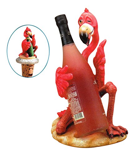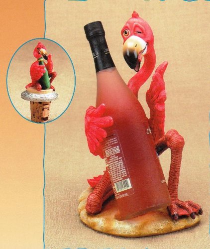 TROPICAL PINK FLAMINGO VINO WINE BOTTLE HOLDER AND FREE TOPPER STOPPER