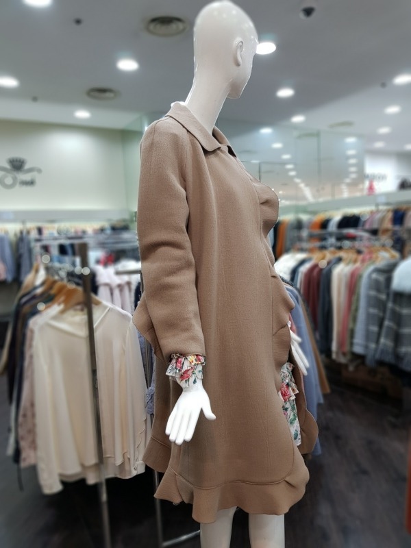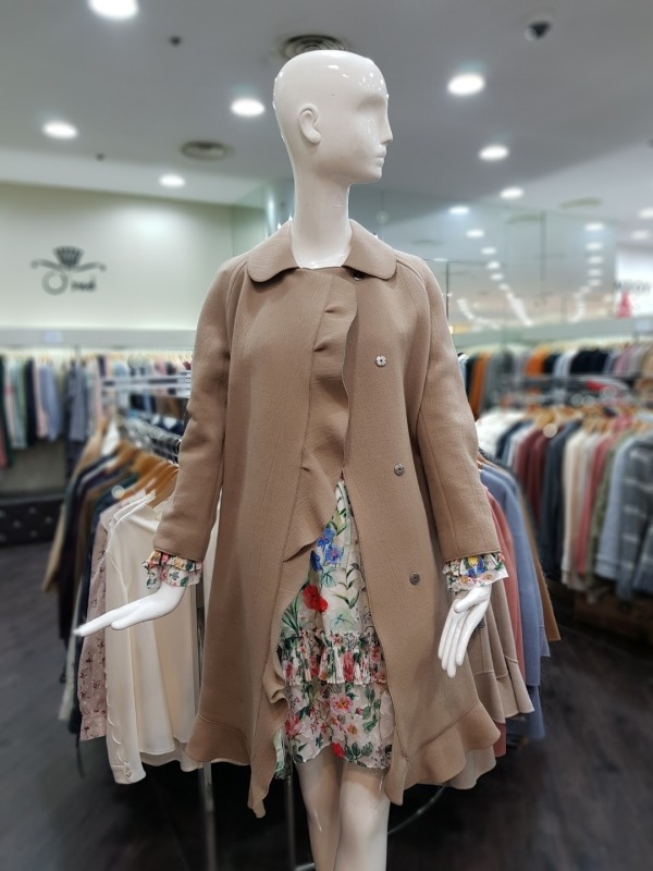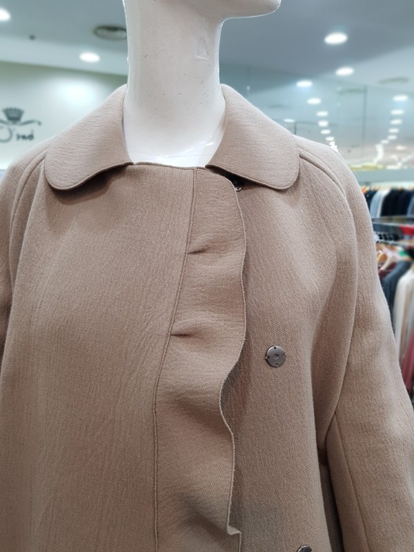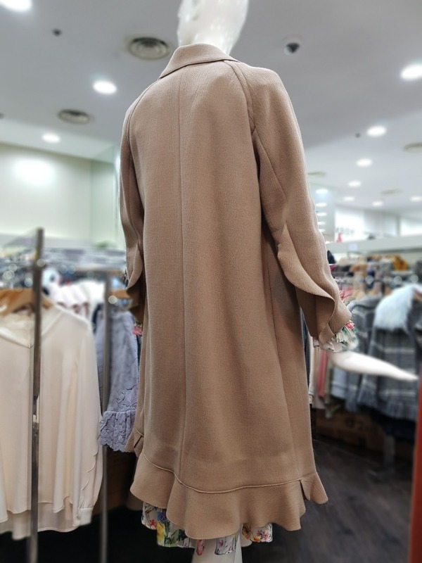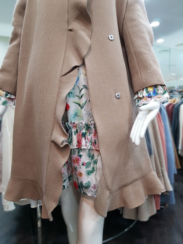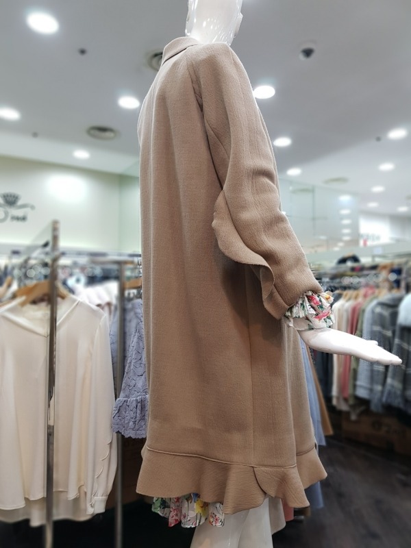 총장 96CM정도의 코트로 동그란 카라와 프릴로 여성스러움을 더한 봄코트 입니다.