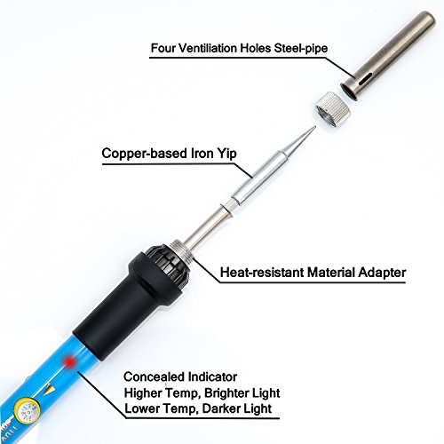 Heats up Fast: Superior soldering iron kit adopts inner-heated ceramic heater technology, adjustable temperature with thermostat range from 200~450℃, great calorific capacity, rapid heat transfer and fast heat recovery enable you work fast and efficiently