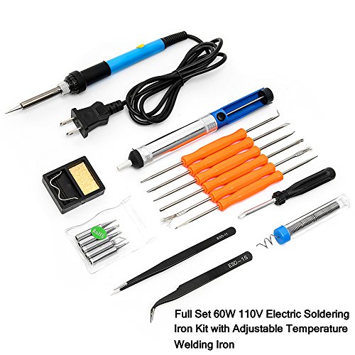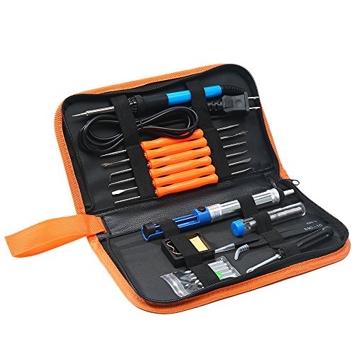 8 IN 1 Full Kit: The Kit comes with soldering iron, 5 soldering tips, a stand with cleaning Sponge, soldering sucker (desoldering pump), 6 interchangeable assist tool, solder wire, anti-static tweezers and a screwdriver