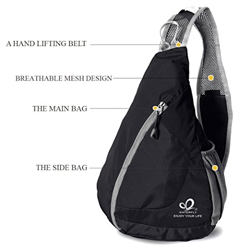-. Brand : Waterfly -. Feature : WATERFLY focal on outdoor rainproof bag. Our bag is your good friend on hiking, camping, running and trip. / Made of rainproof soft nylon. SBS brand zipper. YNS brand buckle.Reinforced all contacted place with Bartack Process. / High quality packable Cross Body Bag, can be folded into a small pouch and expanded to a large backpack. / You can make the bag firm on your body through adjusting the Detachable Waist Strap when you run. / 1 main pouch and 4 small pouches. It can organize iPad 4/5/6,magazine and iPhone 6 plus and other items.Capacity:10L Weight:0.48 Pound -. Label : WATERFLY -. Manufacturer : WATERFLY -. ProductGroup : Sports -. ProductTypeName : OUTDOOR_RECREATION_PRODUCT -. Publisher : WATERFLY -. Studio : WATERFLY -. Title : WATERFLY Packable Shoulder Backpack Sling Chest CrossBody Bag Cover Pack Rucksack for Bicycle Sport Hiking Travel Camping Bookbag Men Women