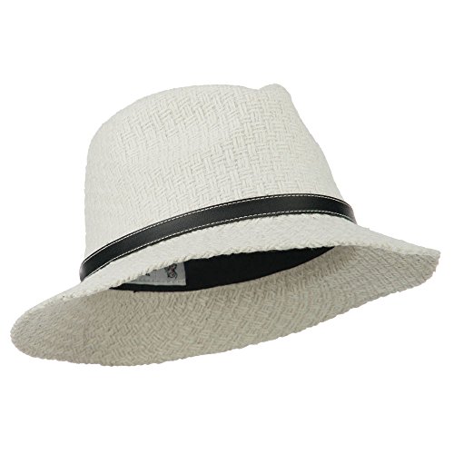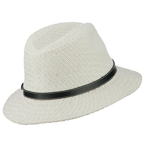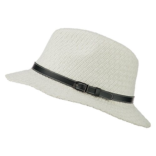 -. Binding : Apparel -. Brand : Hatiya -. Department : womens -. Feature : Made of wool and polyester. / One size fits most ladies, fitting up to XL. / Adult/Female. / Fitted with an inner sweatband. / Crown measures 3 1/2 inches deep. -. ProductGroup : Apparel -. ProductTypeName : HAT -. Title : Knit Panama Hat with Leather Band - White