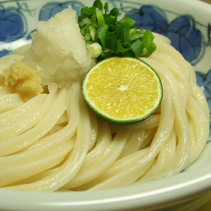 多目のお湯で麺を茹でた後、流水でもみ洗いします。表面のぬめりが取れれば完成。ざるうどんやひやしうどん、ぶっかけうどん、かけうどん、天婦羅うどんや月見うどんで頂きます。半生讃岐うどんでは、上記水洗い後一度温め直してから釜玉うどんや釜揚げうどんにします。
