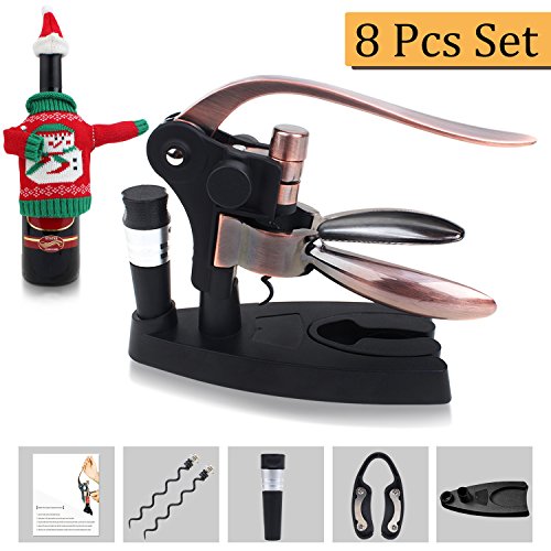 -. Feature : Unique Design: Retro nostalgia rabbit ear classic smooth lever and grip are based on the idea of mechanical advantage. As pressure is applied at one end of the lever handle, power is multiplied at the corkscrew, so you just need five short steps and one second is all it takes to open any bottle of wine. / Durable Materials: Made of heavy-duty zinc alloy with bronze-plated grips and handles, metal gears& a Teflon-coated spiral. / IDEAL GIFT: What better way to SURPRISE your lover? Mother's Day, Christmas, even Valentine's Day and All occasions,Wine Bottle Opener can become someone you hold dear to your heart a wonderful gift. / All your needs are here:Corkscrew with Stand, 2 Extra screw,Foil Cutter, Vacuum Sealed Stopper, Bottle Cover and Manual. / Guarantee:1 year 100% risk-free satisfaction guarantee,if you have any issues concering our Wine Bottle Opener Corkscrew, please feel free to contact us at anytime.