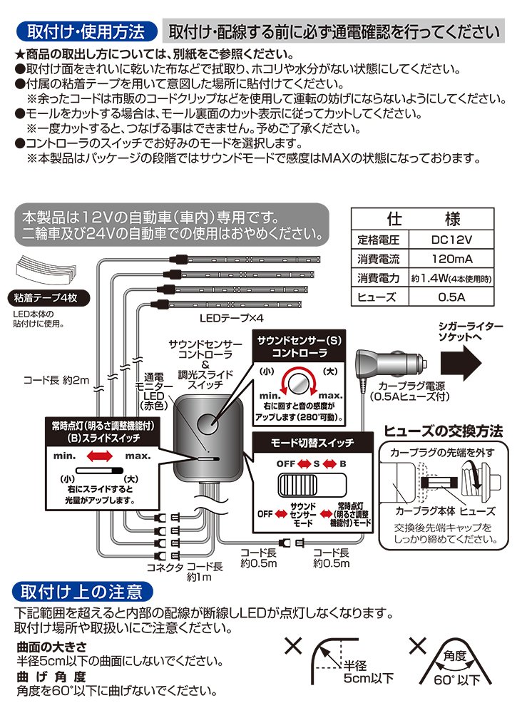 Mirarido (MIRAREED) Illumination LED tape side-emitting sound sensor (blue) 10cm RA-293