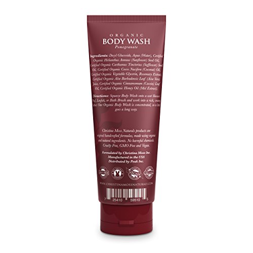Body Wash, Organic, Natural Body Cleanser For Bath, Shower. No Harmful Chemicals. Certified Organic Ingredients. 8oz, Pomegranate. Christina Moss...
