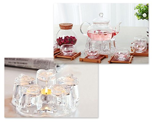 Product Description This Heart Shaped Glass Teapot Warmer is made of borosilicate glass. The glass tea pot warmer can keep your tea warm for longer and heat resistant. The heart shaped candle warmer is decorative when not being used. 0
