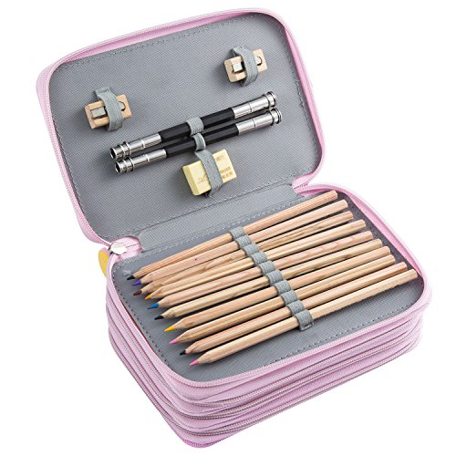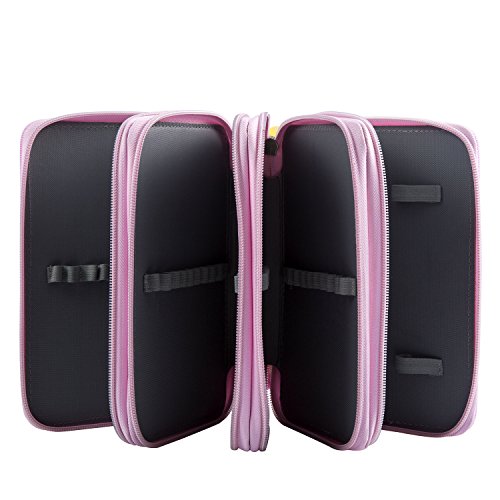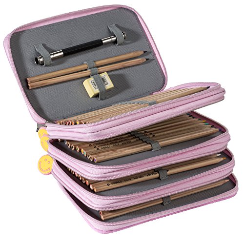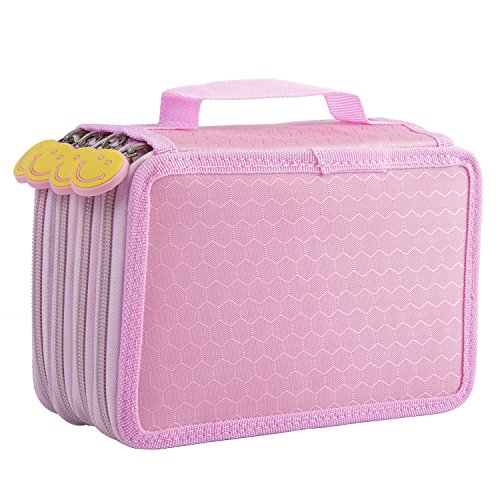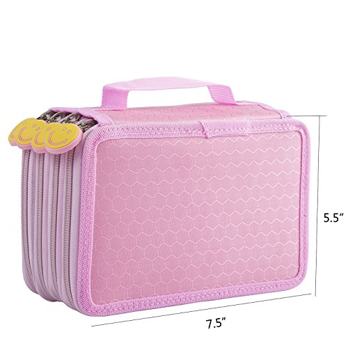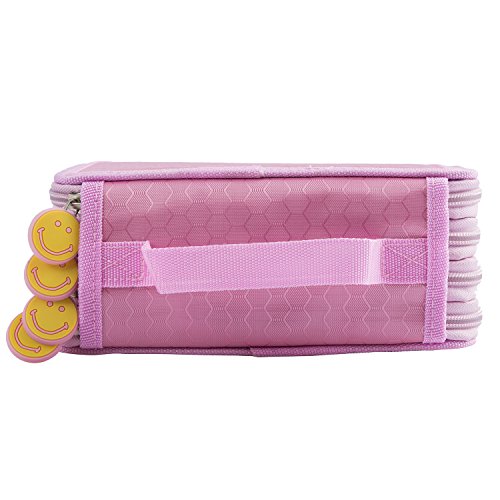 72 Slots Pencil Bag Case 4-Layer Stationery Organizers Pencil Holder with Emoji Zipper (Pink)