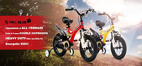 Royalbaby Flying Bear Full Suspension Kids Bike Perfect Gift for Kids, Boys Bike, Girls Bike, Sport Bike, 14 Inch Wheels, Yellow