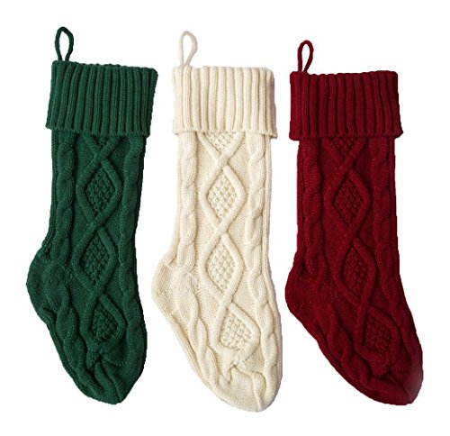 JBNEG Pack 3, 18'' Knit Christmas Stockings woven Stockings Christmas Decorations White/Red/Green