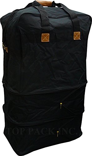 -. Brand : WT -. Color : Black -. Department : mens -. Feature : Material - 600D Polyester construction. Main compartment opens with twin zipper closure. / Reinforcing strap. Three levels foldable. Comfort-grip carry handle. / Adjustable and Removable shoulder strap. Two front pockets for last-minute storage. -. ProductGroup : Apparel -. ProductTypeName : LAGE -. Title : 30"36"40" Polyester wheeled Duffle Bag