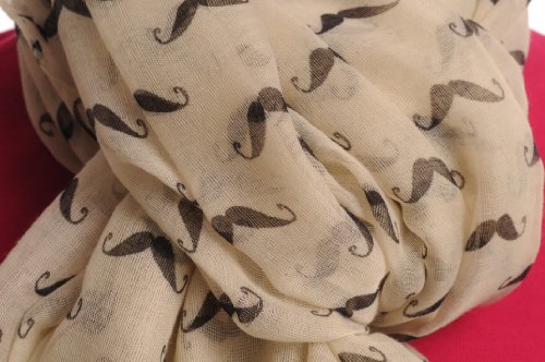 (LissKiss)/Accessories/Cold Weather Accessories/DIRECT FROM USA/Black Moustaches On Light Beige Unisex Scarf Beach Sarong - Beige Designer Scarf