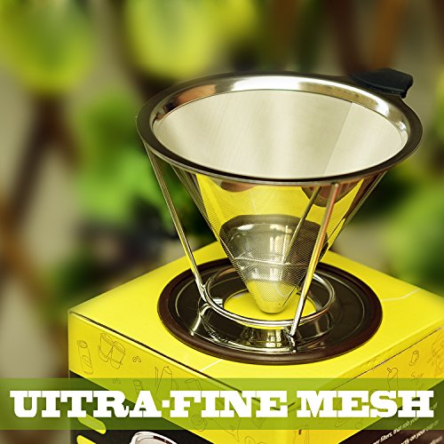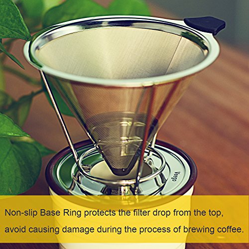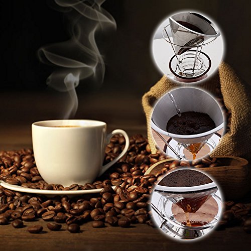 Excellent Material & Eco-friendly: This coffee dripper is made of 304 food grade stainless steel which is 100% rust resistant and reusable. It is time to say goodbye to those disposable paper filters that absorb your coffee's natural flavors and essential oils!