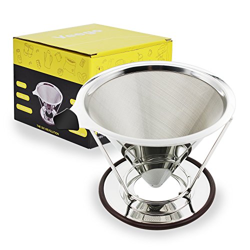 Veego Coffee Filter Stainless Steel Mesh Pour Over Coffee Dripper Reusable Clever Cone Coffee Maker with Stand