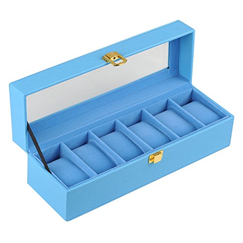 Andrew Family 6 Slot Leather Watch Box Display Case Organizer Glass Jewelry Storage Light Blue