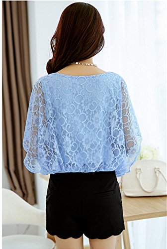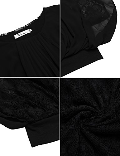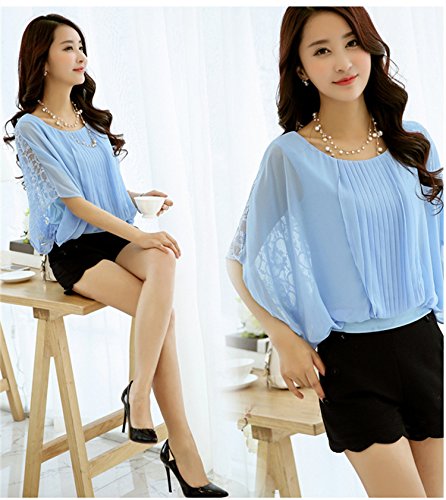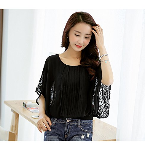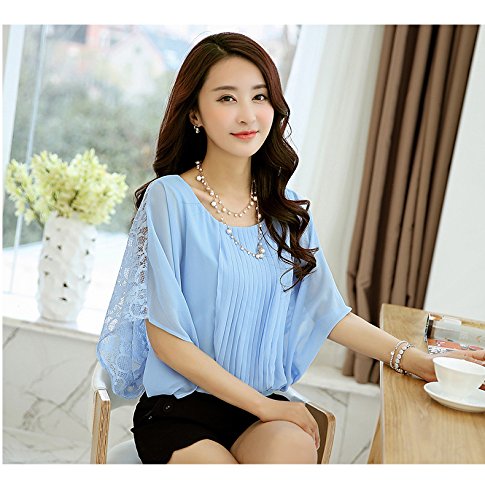 -. Title : Zeagoo(ジー) ブラウス シフォン レース トップス シャツ ゆったり とろみ 体型カバー エレガント ドルマン スリーブ ウェストゴム 大きいサイズ