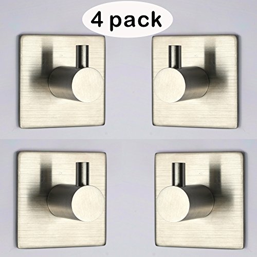 Stainless Steel 3M Self Adhesive Hooks,4-pack Single Hooks