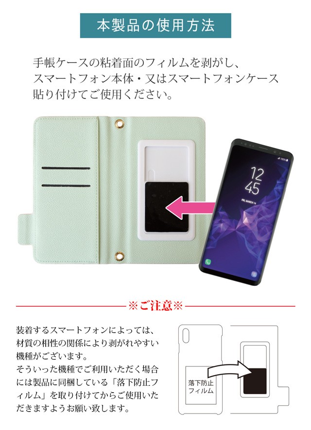 本製品はスマホを粘着ジェルシートで固定するため実質全機種対応として問扱いをしておりますが装着する機種によってはお客様のイメージにそぐわない場合がございます。製品不良以外での返品は受け付けかねますのでお買い求めの際はページに記載の製品のサイズ、およびお手持ちの端末の大きさをご確認くださいますようお願い申し上げます。