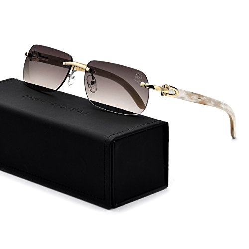 HEPIDEM Buffalo Horn Handmade Sun Glasses Square Rimless Luxury Sunglasses 0816