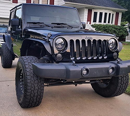 LX-LIGHT 7'' Round Black Cree LED Headlight High Low Beam for Jeep Wrangler JK TJ LJ CJ Hummber H1 H2 (Pair)