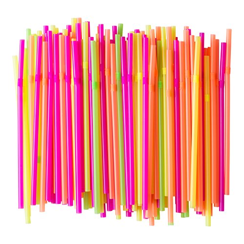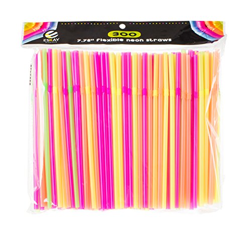 Eskay, Flexible Neon Plastic Straws, Food-Safe BPA-Free Plastic, Jumbo Pack 300 Straws, 7 3/4 Inches, over 8 Inches stretched