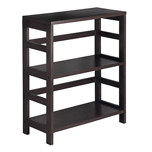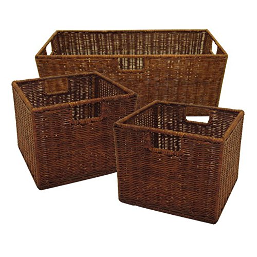 -. Title : Winsome Leo 4-Piece Wooden Storage Shelf with 1 Large and 2 Small Rattan Baskets in Espresso Finish