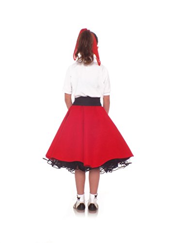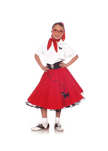 Our unique, homemade skirts are lovingly hand-cut and sewn by seamstresses right here in the USA. Rest assured that you are supporting a local business when you purchase our high-quality clothing. We use only the highest quality, acrylic felt available for long lasting comfort and durability. These skirts can be worn again and again, from costume to the dress up box. Poodle and leash appliques are professionally embroidered, not ironed on, to ensure they never fall off. We offer 3 different sizes with an elastic waistband, to provide a snug, comfortable fit. With a wide variety of colors available, your special young lady is sure to find just the right one to make her happy. The authentic, vintage, 1950's look of our poodle skirts is a must for that daddy-daughter dance, Halloween costume, sock hop, themed party and more!Feature