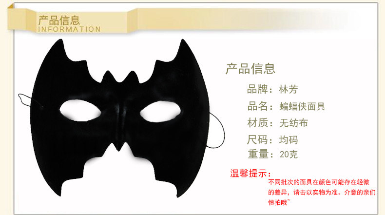 林芳 20g儿童卡通面具 动漫面具 表演面具 蝙蝠侠面具