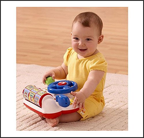 This is a beep beep! Get moving with the tiny tot driver! This brightly colored role-play toy introduces animals, colors, numbers and places through fun phrases and realistic car sounds. Baby can spin the steering wheel to move the mini car and drive to familiar destinations or press the chunky buttons to hear fun phrases and the horn go off. Great seller thank you. Item as described.