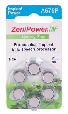 ZeniPower Cochlear Implant Batteries Size A675P Zero Mercury (60 Batteries)