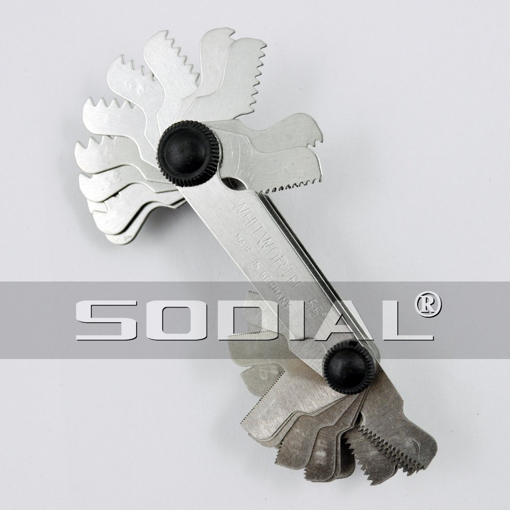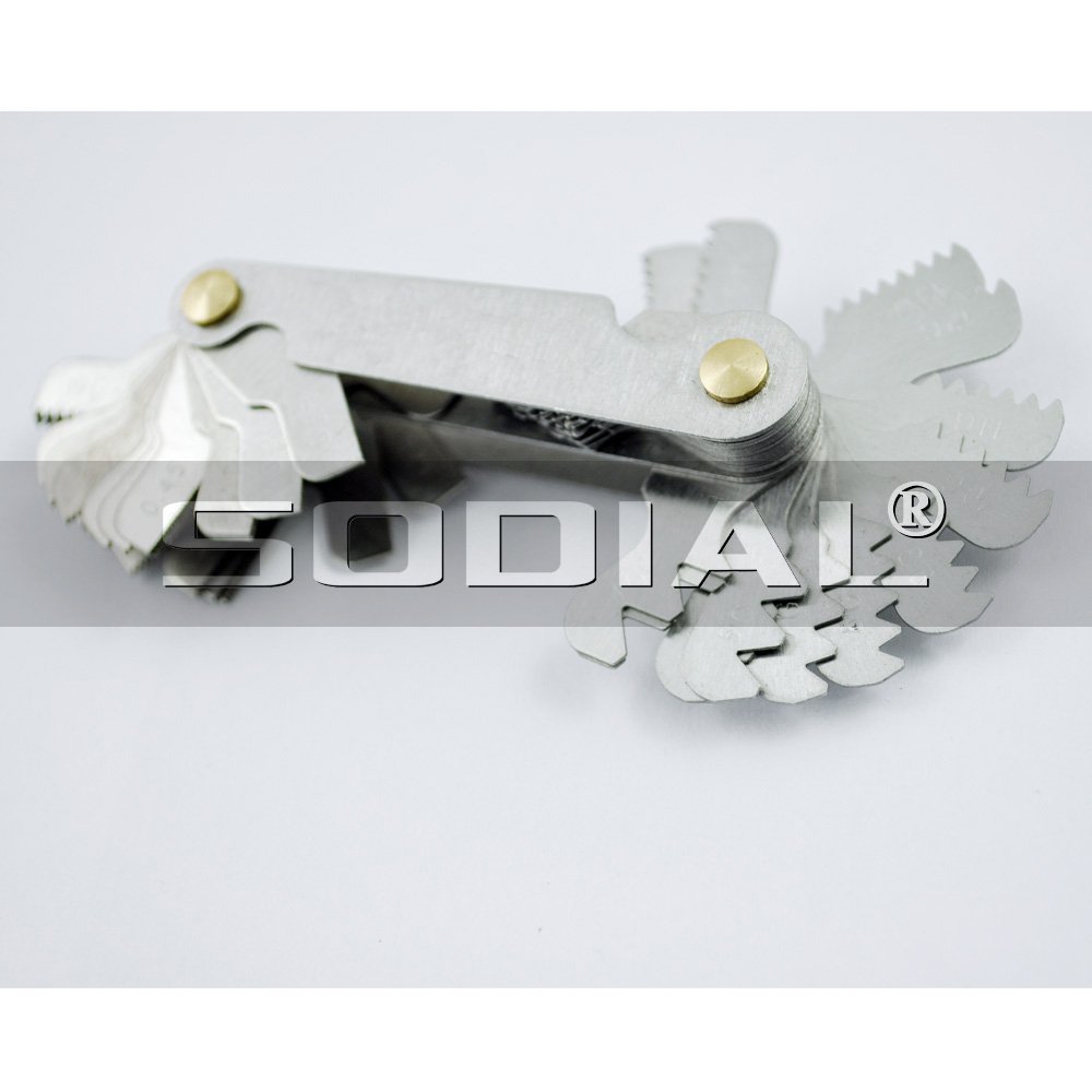 Professional set of 55 degree Whitworth and 60 degree meter screw pitch gauge; 52 pitch folding this pitch gauge accurately measures internal and external threads.
