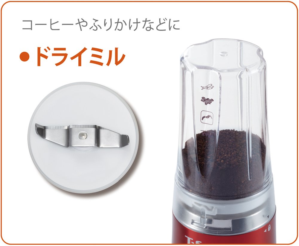 With grinding coffee beans and handy sprinkling etc. with "dry mill"