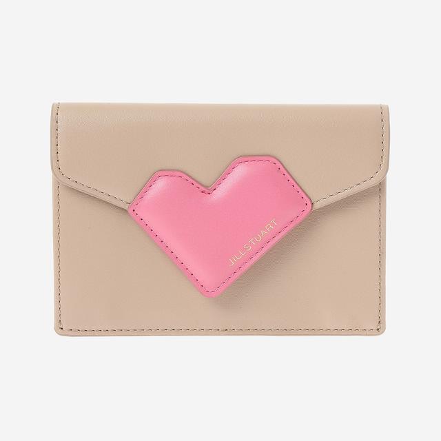 핑크 컬러의 하트 장식으로 사랑스러운 외관을 연출한 명함/카드 지갑입니다.