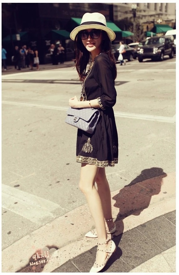 ブラックのミニ丈ワンピースです。