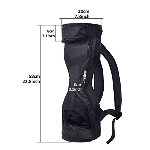 Description Waterproof Backpack to Carry/Store your Drifting Board For Drifting Boards with 6.5inch wheels and max. 20.8inch total length. The backpack is made from strong and durable nylon. It has 2 zippers that give maximum access to the backpack, allowing you to store your Drifting Board with great ease. The lining of the backpack is waterproof. It will protect your Drifting Board from rain, snow, etc. The backpack can not be submerged in water. custom double layer cloth, protection your Board BETTER The mesh pocket is the ideal spot to store the charging adapter of your Drifting Board. But you can also use it for drink bottles, wrist guards, sunglasses, beanie hats, etc. For comfortable carrying, the backpack is equipped with an adjustable shoulder straps. The carry handle can also be used to hang the backpack onto a coat hook. Contents: 1x Drifting Board backpack. 0