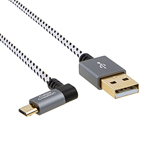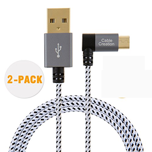 CableCreation [2-PACK] 10 Feet Left Angle Micro USB 2.0 Braided Cable, 90 Degree Vertical Left USB 2.0 A Male to Micro USB Male with Aluminium Case,3Meters, Space Gray