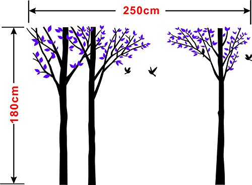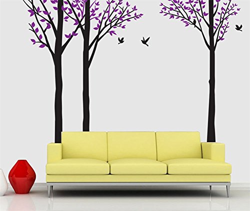 -. Title : CaseFan 98.4x70.9" Brids Flying on Forest Trees Wall Decal for Living Room TV Background Nursery Removable Decoration Sticker,Black+Purple