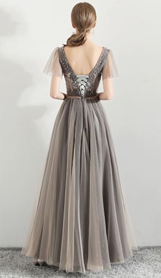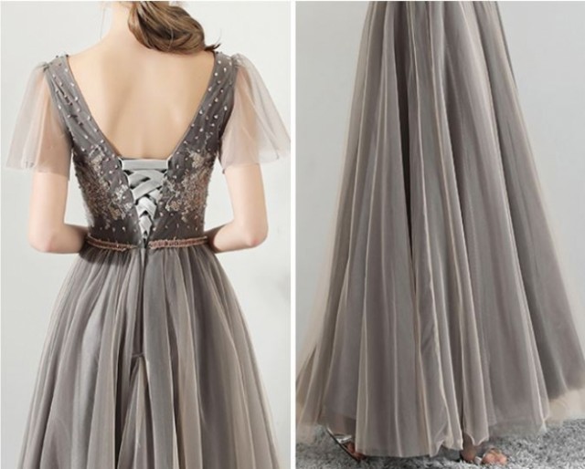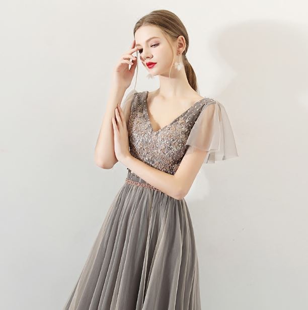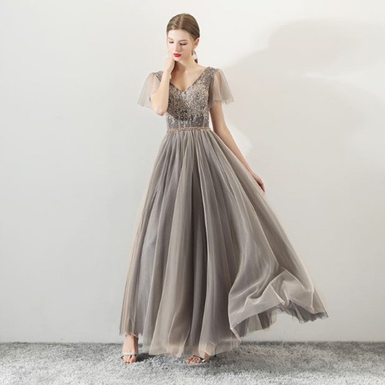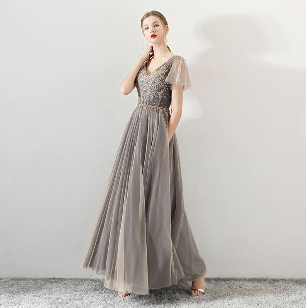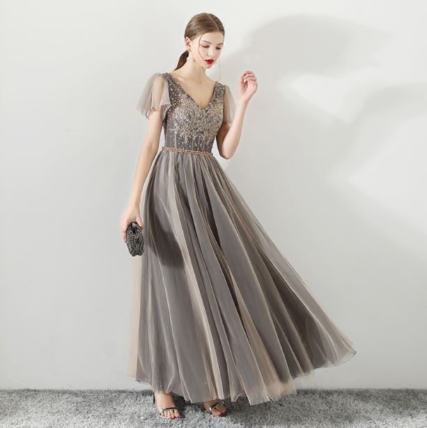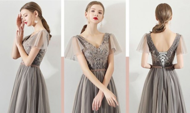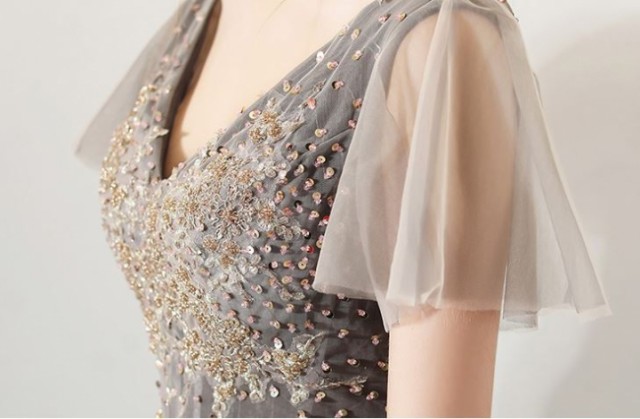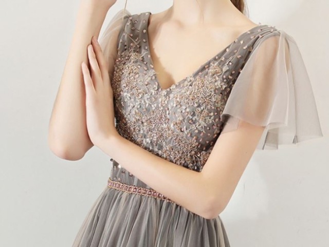 キラキラビーズやスパンコールが華やかなロングドレスです。