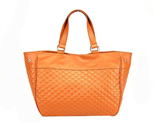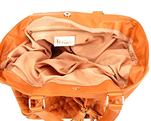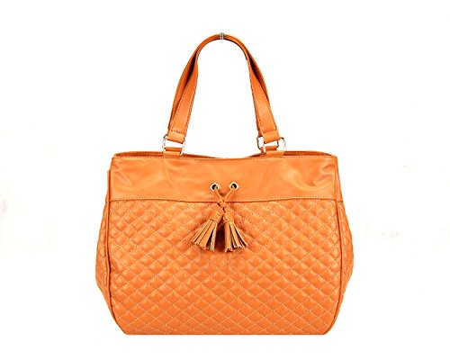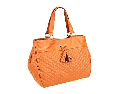 This endearing bag can be the best companion for your shopping agendas and weekend trips. The sleek matte finish quilted bag from FASH gives it a luxurious look. Crafted for durability and style the bag is made using high quality man-made leather and has a quilted patterned smooth matte exterior. The interior of this beautiful handbag has been lined with high quality and strong fabric lined interior which has been designed with 1 zippered and 2 open slip through wall pockets for essential like your cell phone, keys and money. This bag also has ample of space for your other belongings. The dual handle gives you comfort in portability, while its magnetic snap buttons closure helps in securing everything that you've kept inside it.