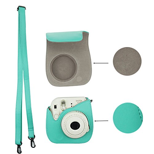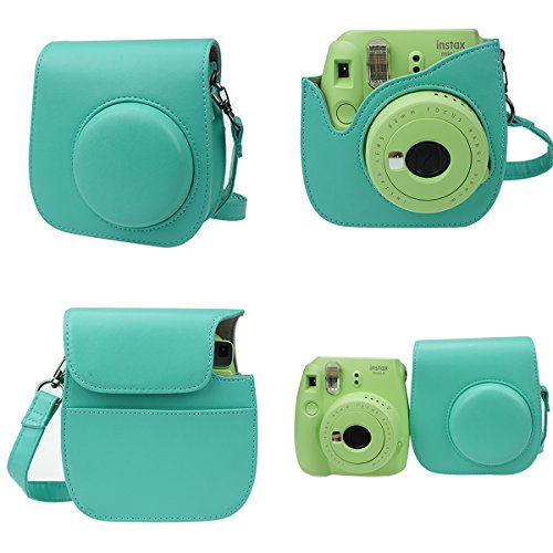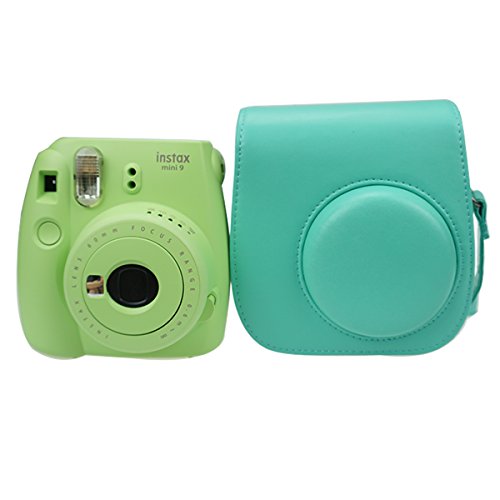 Alohallo Instax Mini 9/ 8/ 8+ Case PU Leather Carring Bag for Fujiflim Instax Mini 8/ Mini 8+/ Mini 9 Instant Film Camera with Shoulder Strap and Pocket (Mint)