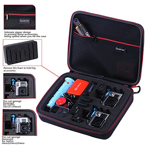 Smatree® SmaCase G260sw Carrying Case for Gopro Hero 5,4, 3+, 3, 2,1 (Camera and Accessories NOT included)-Black&Red