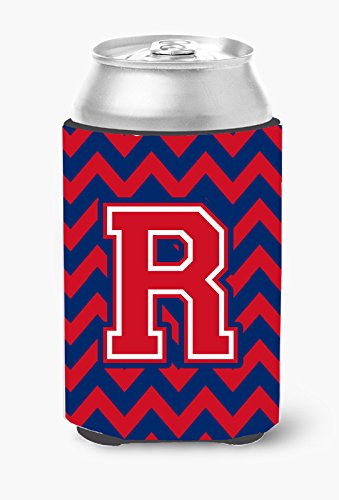 Caroline's Treasures CJ1054-RCC Letter R Chevron Yale Blue and Crimson Can or Bottle Hugger, Multicolor