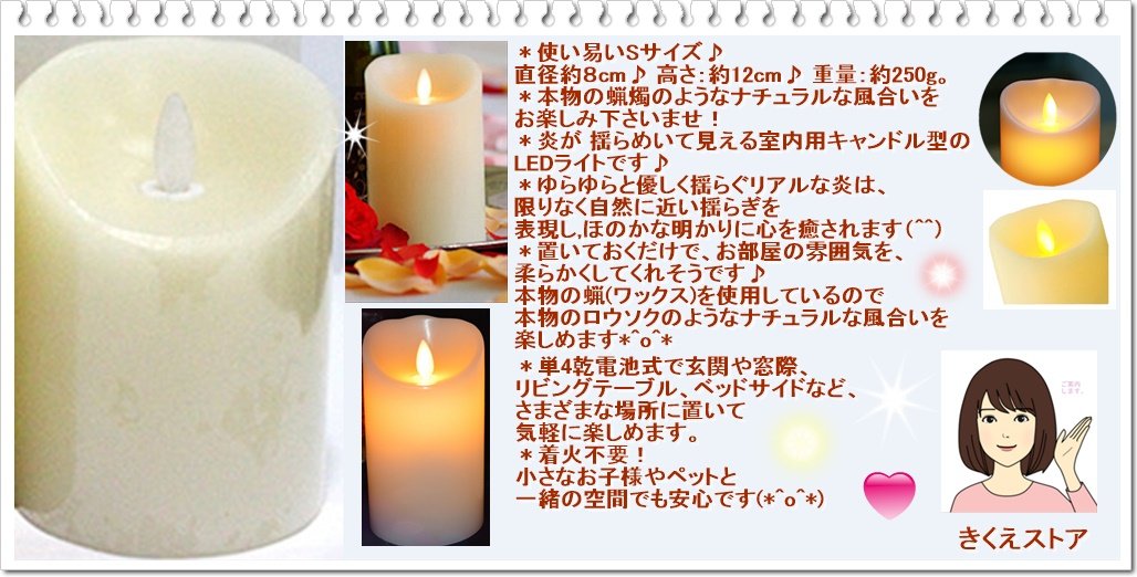 Product Description: * Easy to use S size ♪ Please enjoy a natural texture like a real candle!