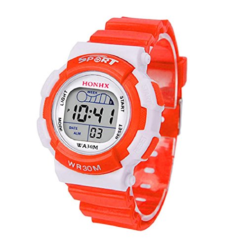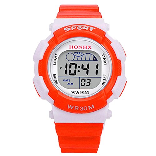 -. Title : HONHX Kids Student Jelly Silicone Band Sports Alarm Date Luminous Digital Wrist Watch -Orange