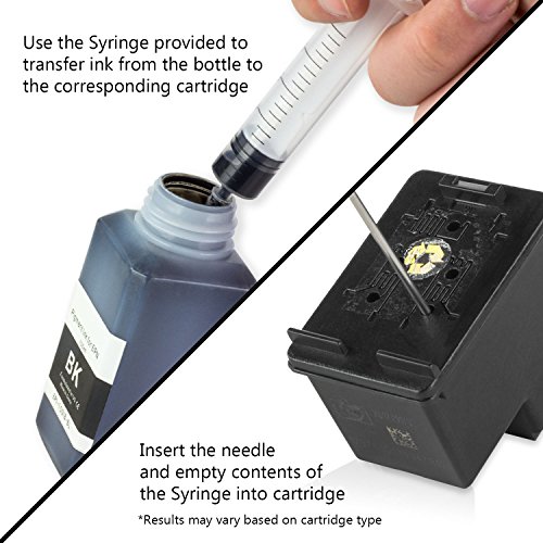 2 PK - HP Compatible Black Pigment Refill Ink Bottle 100ML (3.38 fl oz) Bottle + Refill Tool Kit by SOJIINK