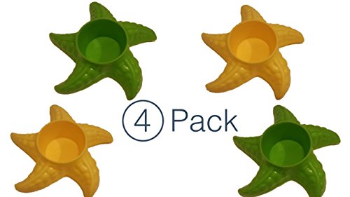- ★ AMAZING - Sand Coasters - Beach Cup Holder - Plastic Starfish (4 pack) Fun Bright Yellow Green Colors - Beach Gadgets - Beach Accessories