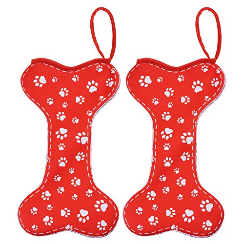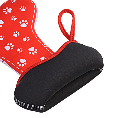 Kloud City Pack of 2 Neoprene Dog Bone Christmas Stocking Holder Pet Gift Bag 16”Paw Print Handmade Christmas Doggie Stocking Gift Tree Fireplace Decorative Hanging Ornament