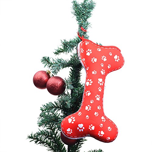 - Dog bone shaped, decorated with paw print, has an opening to put the dog treats and gifts inside