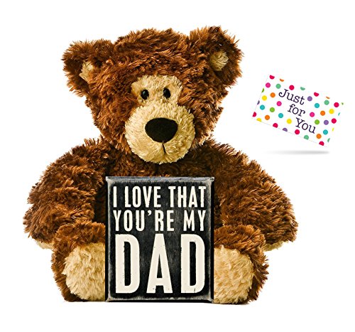 Give the perfect gift for Father's Day, birthday, or just because you want to tell Dad how much you love him - includes "I Love That You're My Dad" box sign, adorable plush brown teddy bear, and "Just for You" gift tag with envelope